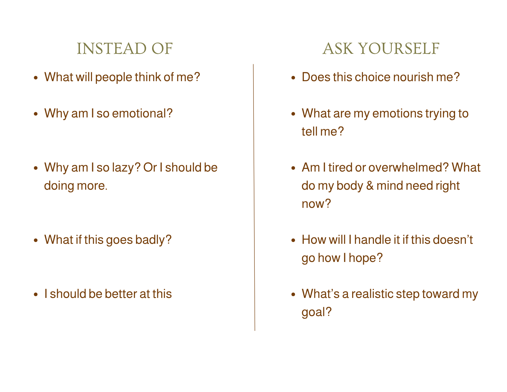 Our minds bring us many thoughts, questions & stories. Some are less helpful than others. I believe that rather than banishing these from our minds or judging ourselves for having them, a slight reframe or adjustment in language is more beneficial.